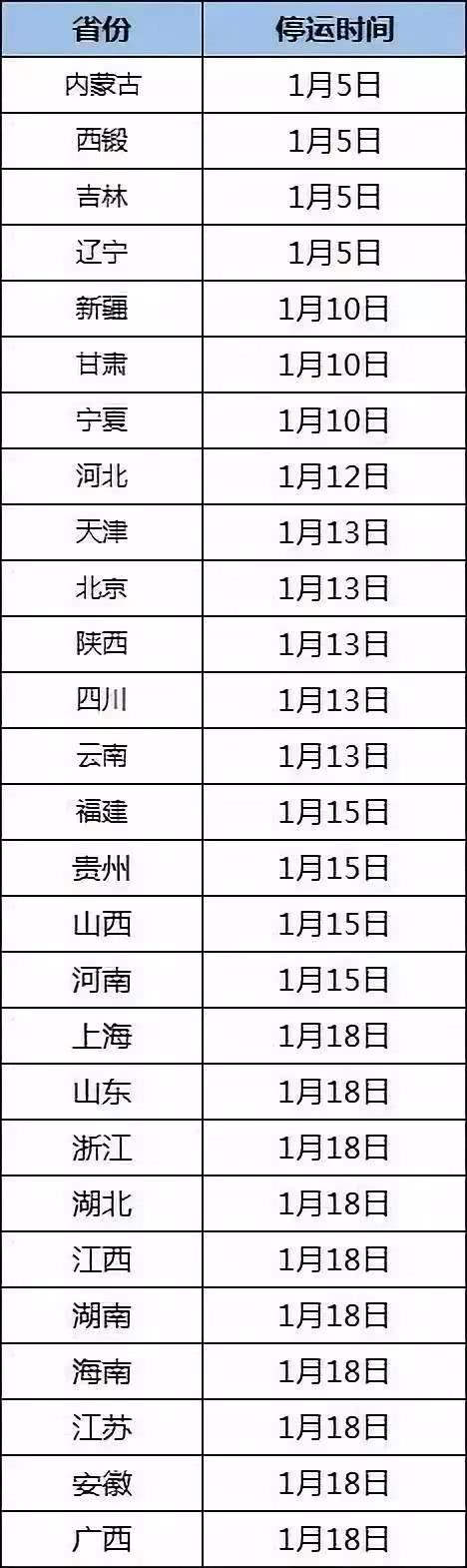 上海、山東、浙江、湖北、江西、湖南、海南、江蘇、安徽、廣西等地1月18日停運(yùn)。